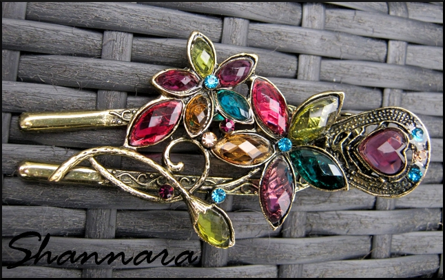 MULTI SWAROVSKI CRYSTAL BIG FLOWER HAIR BARRETTE CLIP.